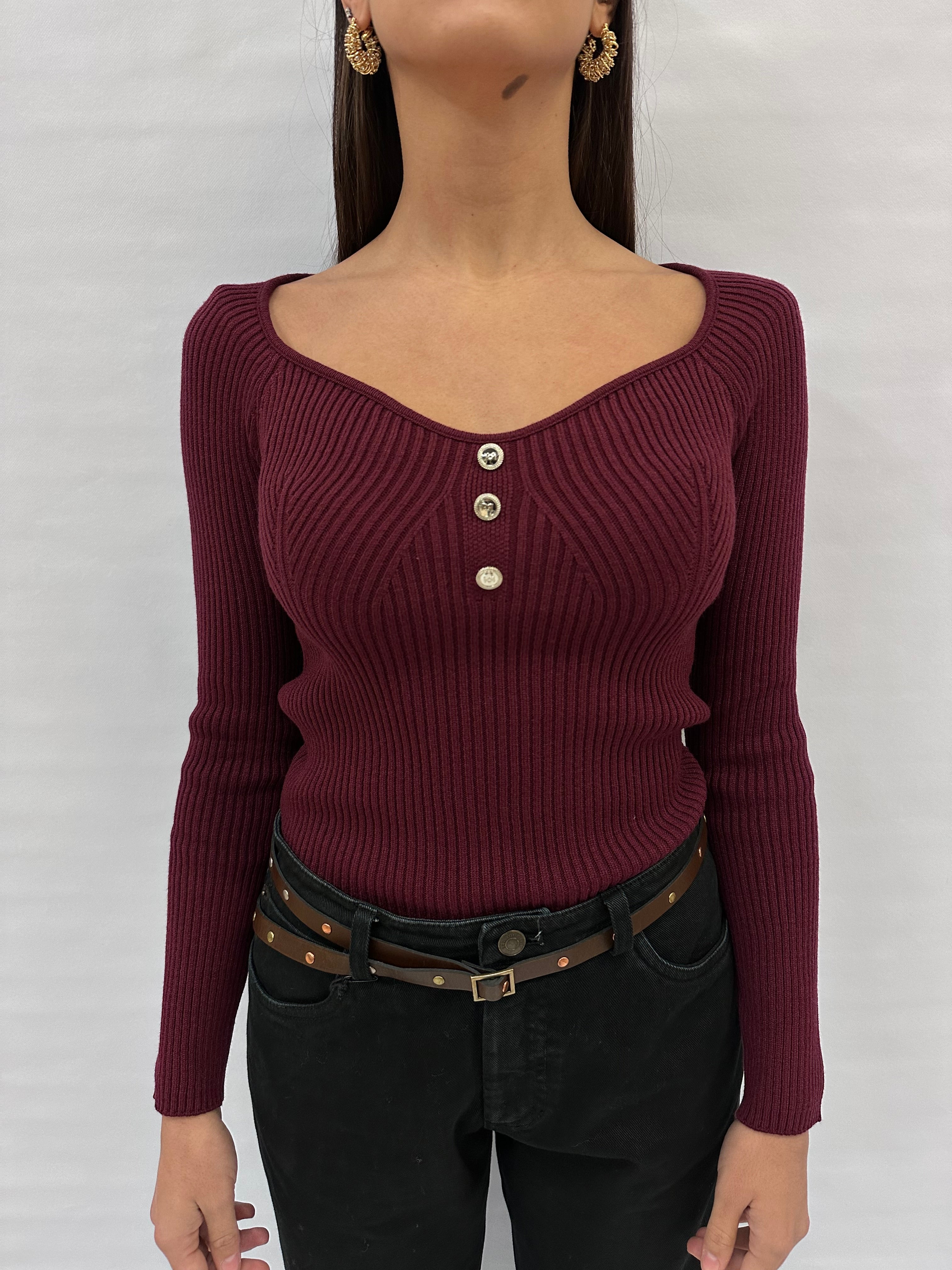 Maglione a polo BLUEJOINT aderente con bottoncini, Cod: 6493